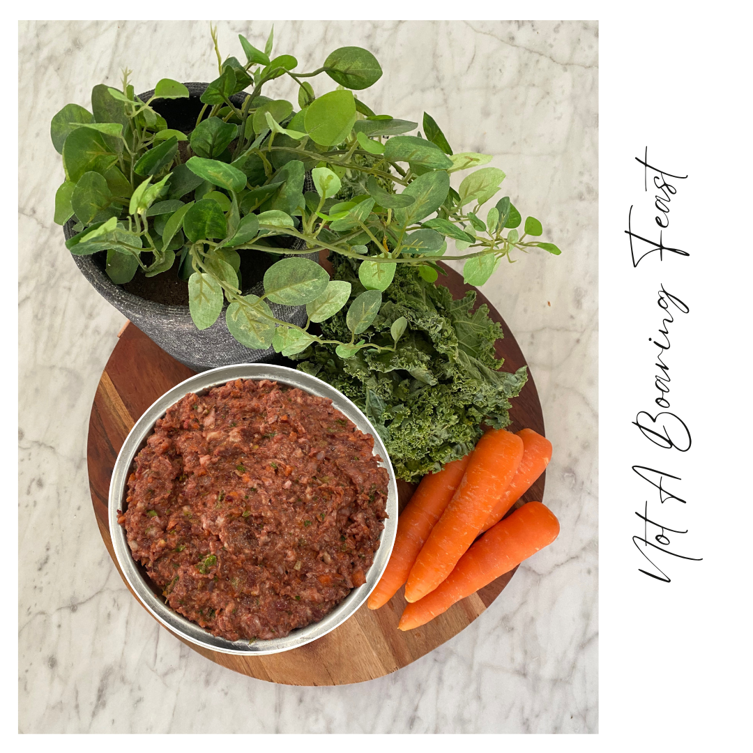 Wild Boar, Boar Bone, Boar Offal, Carrot, Kale, Spinach, Asian Greens